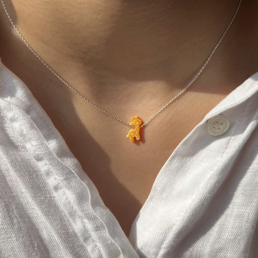 گردنبند اپال زرافه زرد با پلاک اپال درخشان و رنگ زرد گرم، ظاهری جذاب و منحصر به فرد به استایل شما میبخشد. زنجیر نقره به طول ۴۰ سانت با طراحی ساده و زیبا، به راحتی روی گردن قرار میگیرد و برای استفاده روزانه و دائم کاملاً مناسب است. این گردنبند انتخابی عالی برای کسانی است که به دنبال یک اکسسوری خاص و متفاوت هستند.