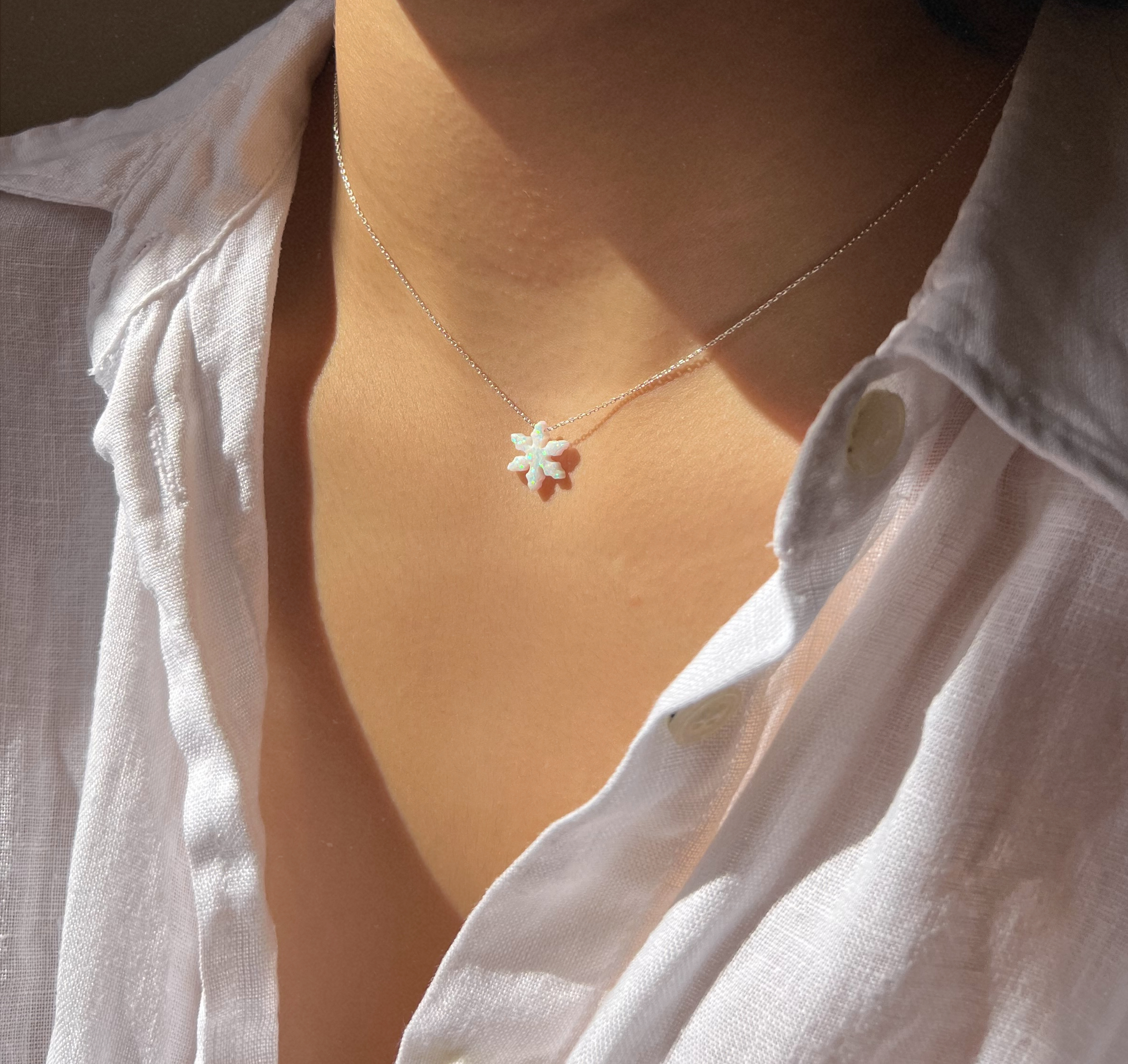 برف سفید اپال با زنجیر نقره ۹۲۵
