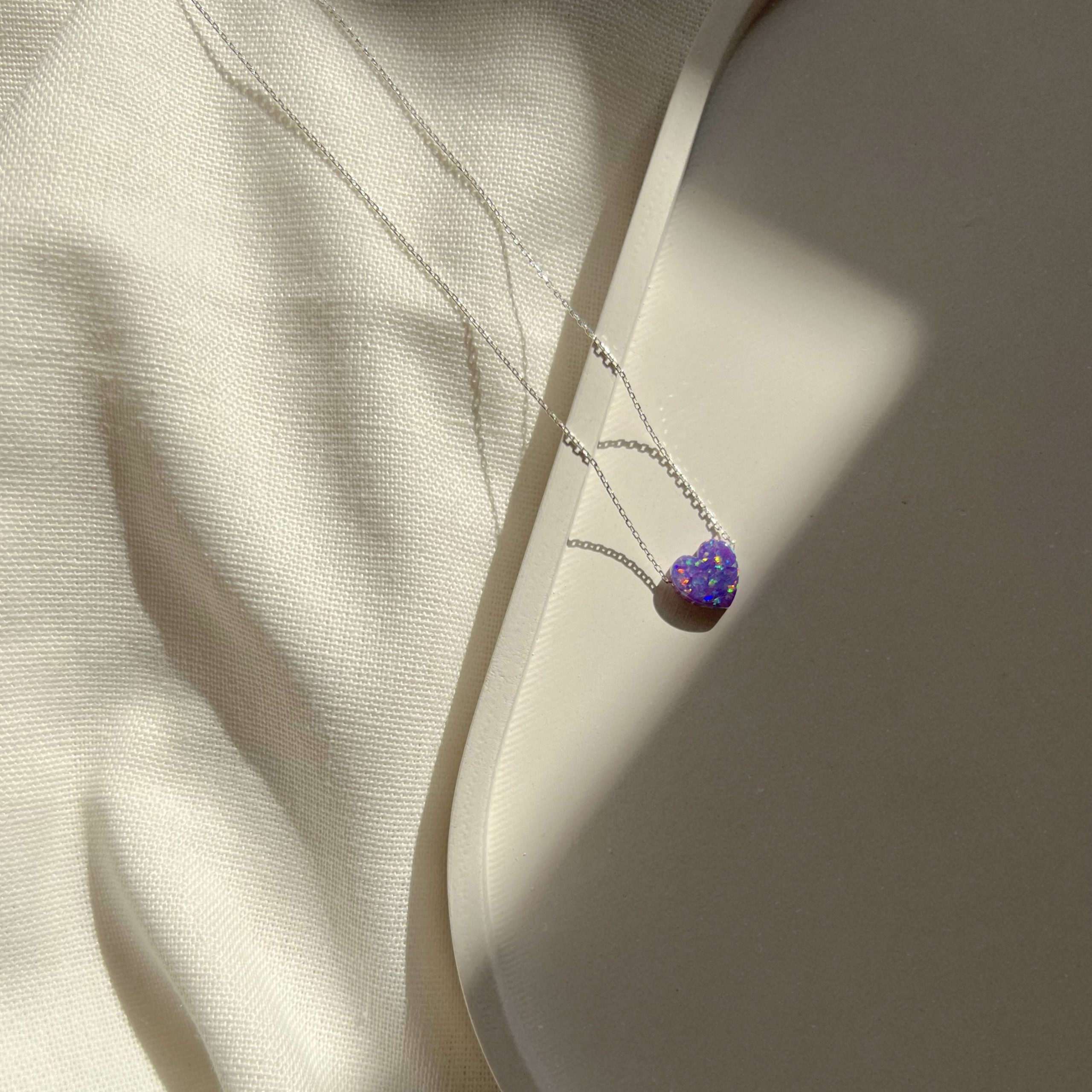قلب بنفش اپال با زنجیر نقره ۹۲۵